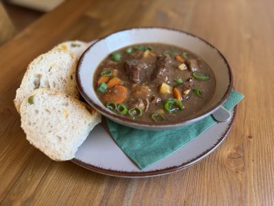 GULÁŠ z hlívy ústřičné s chlebem al:1, 3, 9