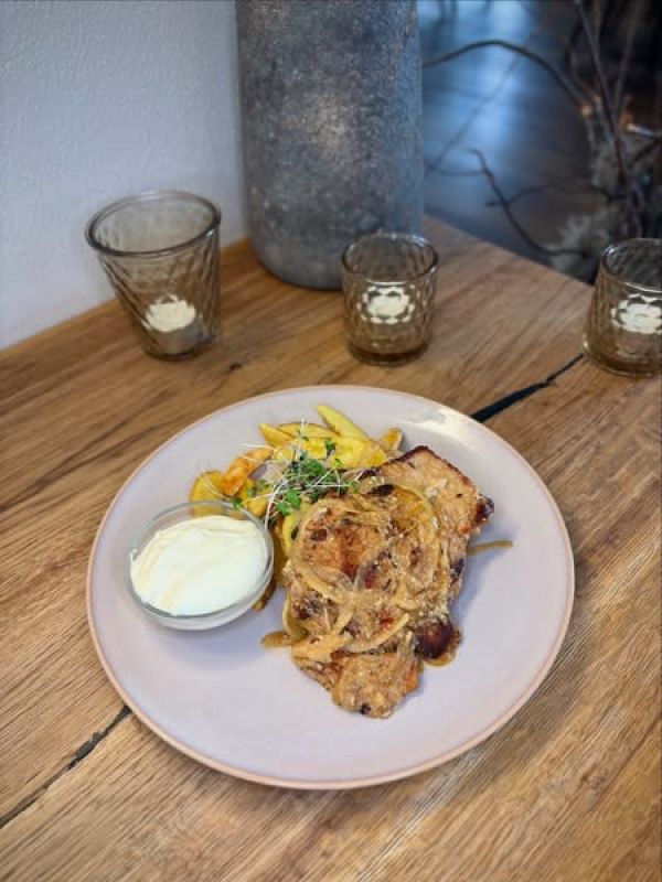 Smažená vepřová kotleta, bramborový salát s majonézou