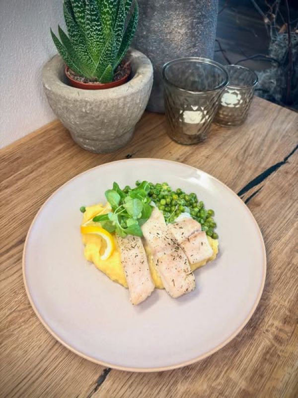 150g Steak z vepřové panenky se smetanovou omáčkou s kapary, opékané brambory