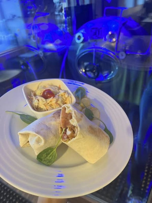 Tortilla plněná kuřecím masem a zeleninou, dresink 137