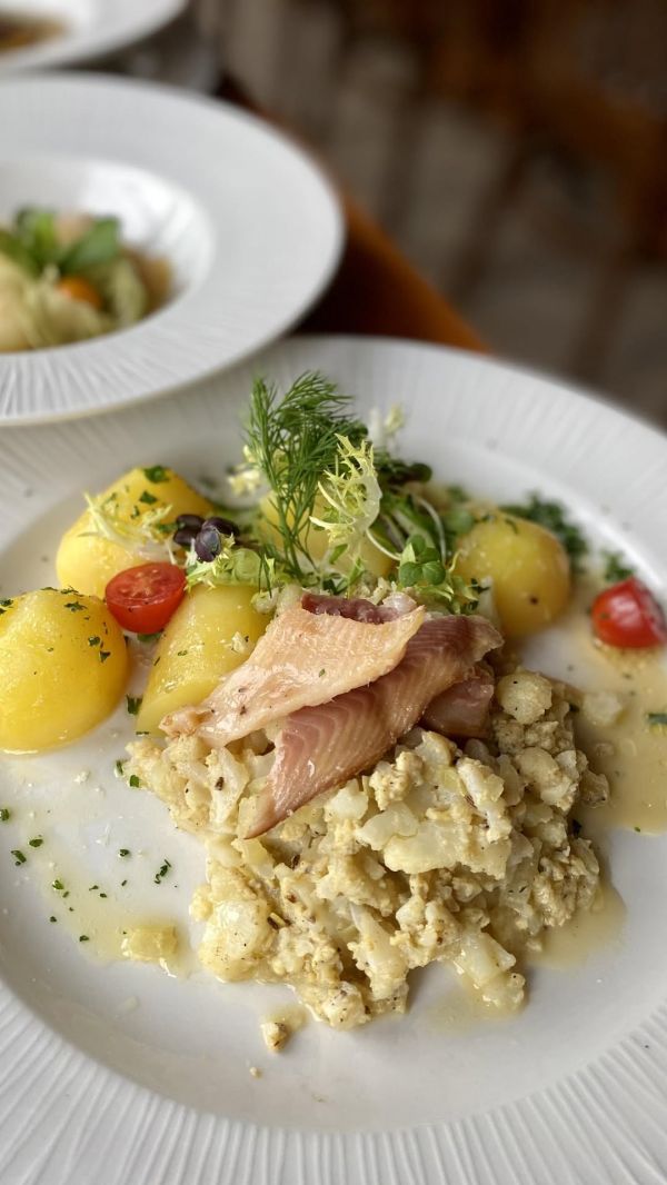 150g Pečený losos s citronovou trávou a mačkanými bramborami