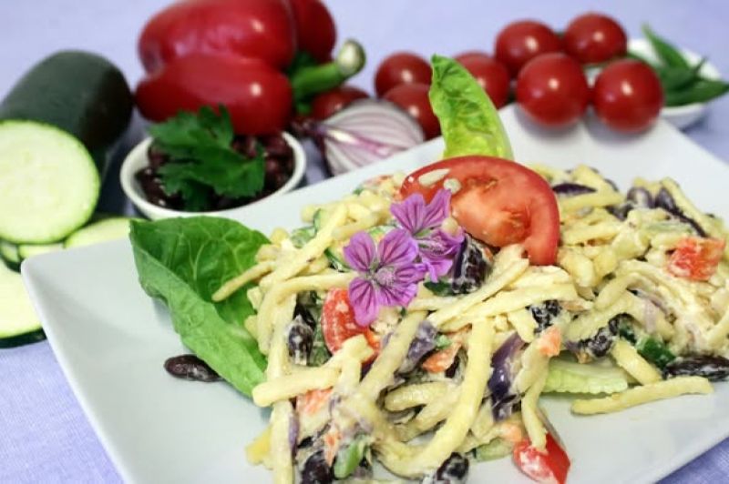 Fazolový salát s vajíčkem, šunkou, zeleninou a majonézou 3