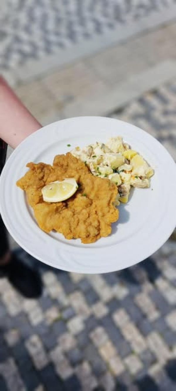 polévka nebo nápoj 0,3l, smažený vepřový řízek, bramborový salát