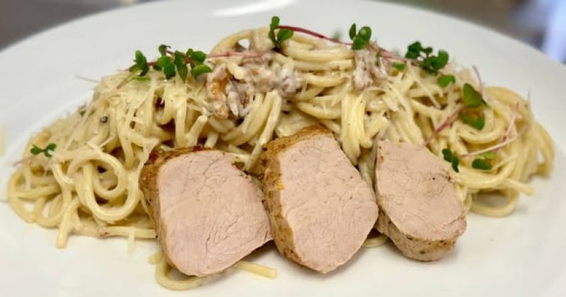 130g Medailonky z panenky, špagety s rukolou, česnekem a parmazánem