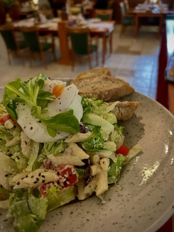 Oběd 3 Hrstková polévka, těstovinový salát s vejci, moučník, nápoj A