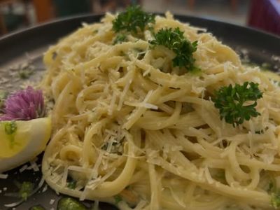 Penne primavera s medailonky z vepřové panenky s bazalkou