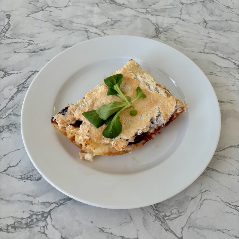 1ks Pečené kuřecí stehýnko s červeným zelím a bramborovými noky