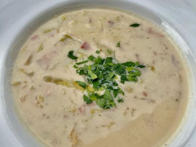 Uzený vývar s masem, zeleninou a kroupami 1379