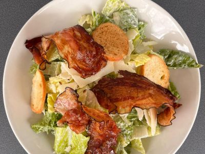 Míchaný salátek s česnekovým dressingem a uzeným masem