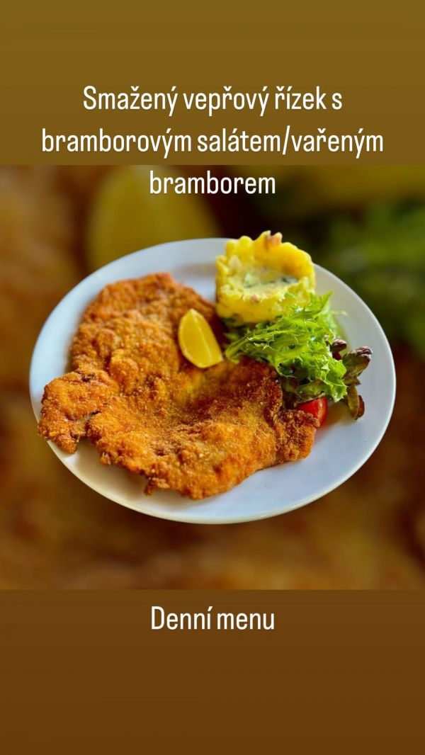 130g Smažený vepřový řízek,bram. salát (1/1,3,7,9,10)