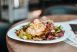 Pštrosí vejce s česnekovo-bramborovou kaší, rajčatový salátek