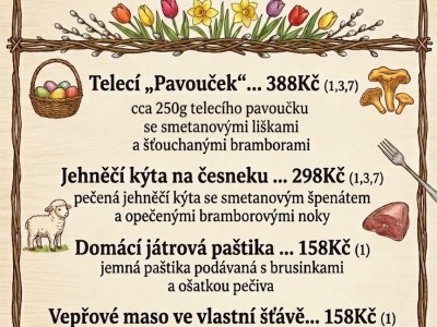 Restaurace otevřena od 10 - 16 hodin. Objednávky na čísle 774204614