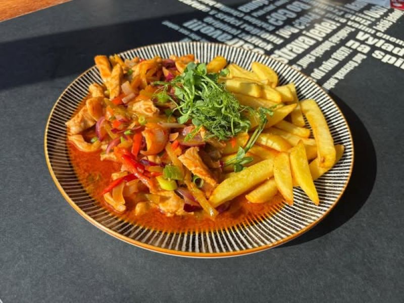 130g Ohnivé maso z vepřové panenky, opékaný brambor …