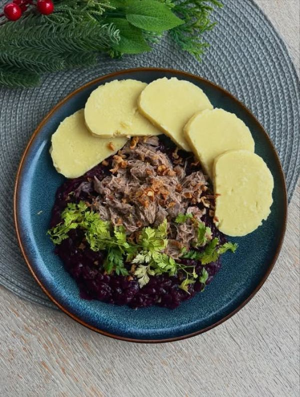 Vepřová pečeně na červeném zelí, vařené brambory – 1, 7
