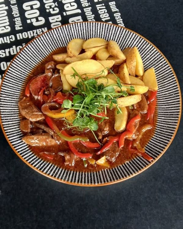 100 g hovězí maso po myslivecku, knedlík 1, 3, 7, 9