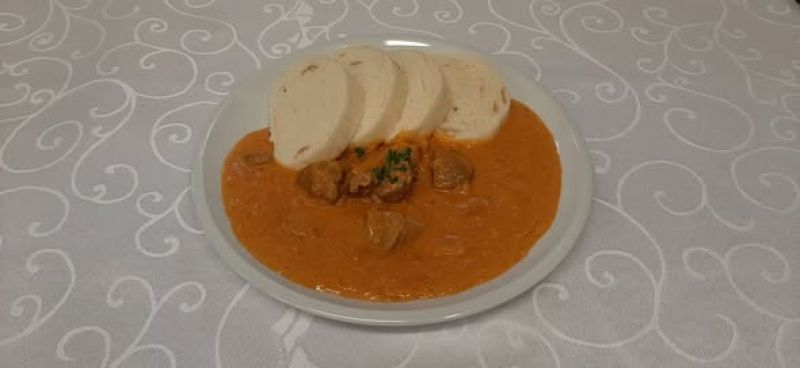 150g Hovězí guláš, houskový knedlík / těstoviny