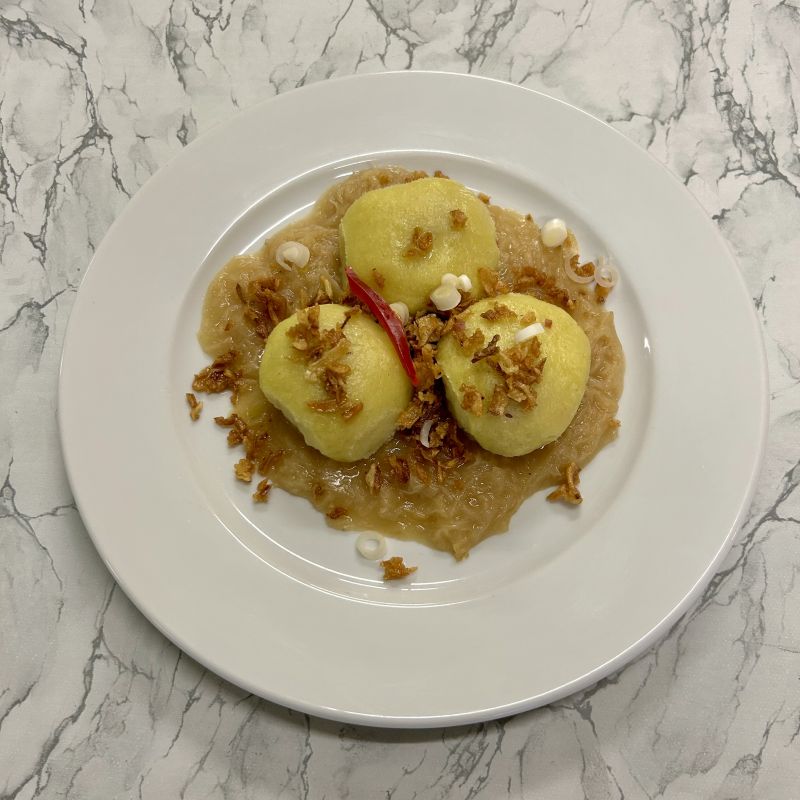 MENU 3) Bun Moc (rýžové nudle, vepř. kuličky, vepř. koleno, vývar, koriandr, rajče, jarní cibulka, citronová tráva