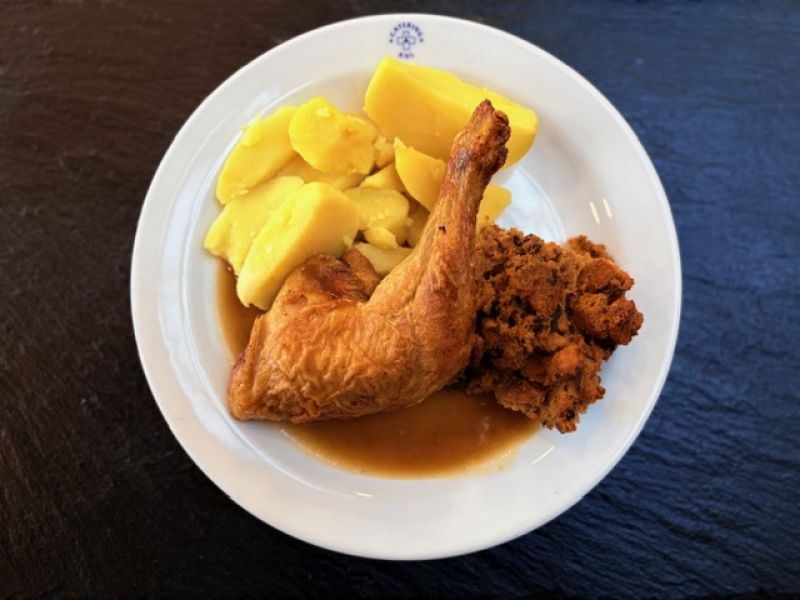 150g Domácí pečená sekaná, vařený brambor, dušené zelí 1, 3, 7