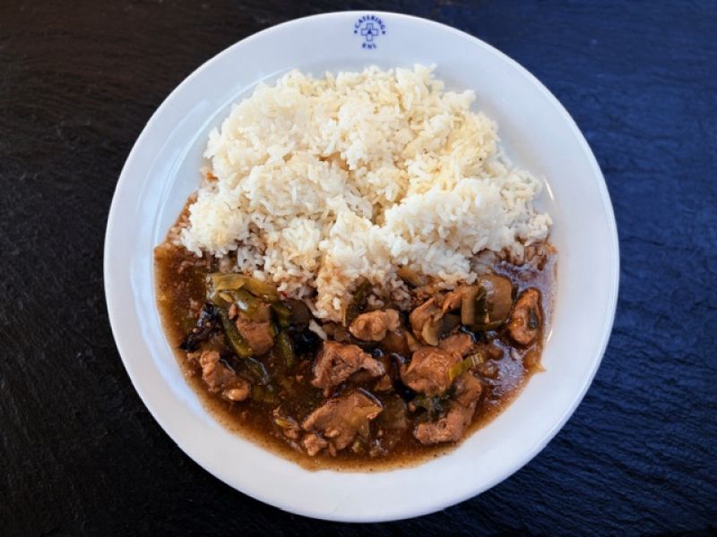 Pikantní kuřecí nudličky, rýže