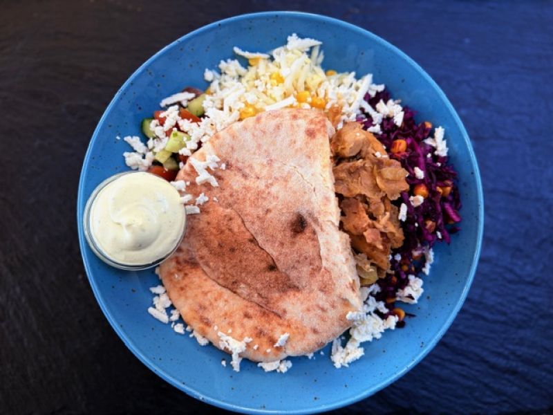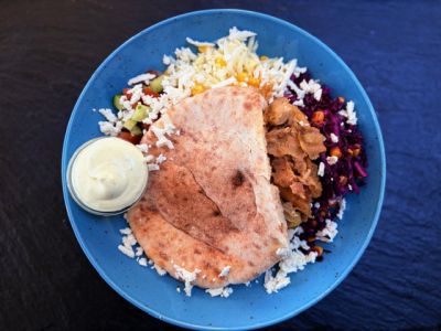 • NÍZKOSACHARIDOVÁ MISKA - kuřecí maso marinované v jogurtu s římským kmínem, kurkumou a zázvorem, salát z řepy s jogurtem, paprika, květáková rýže s kurkumou, pečené batáty, jogurtový dip s chilli/VEGE VARIANTA SE SÝREM HALLOUMI