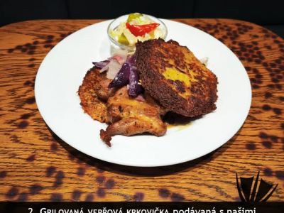 150g Jelení kýta s brusinkovo šípkovou omáčkou, smažené krokety, přízdoba + nápoj 13691012