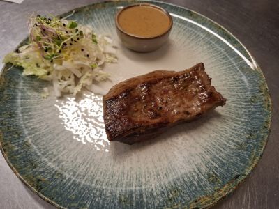 Maso: Vepřová panenka s omáčkou velouté grenaille, grilovaný salát