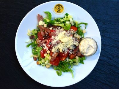 200g Krakonošovo tajemství /hermelín se šunkou zapečený v bramboráku), zelný salát 1, 3, 7