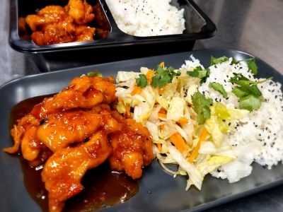 Marinované kuře v hoisin a medu, zelný salátek, rýže