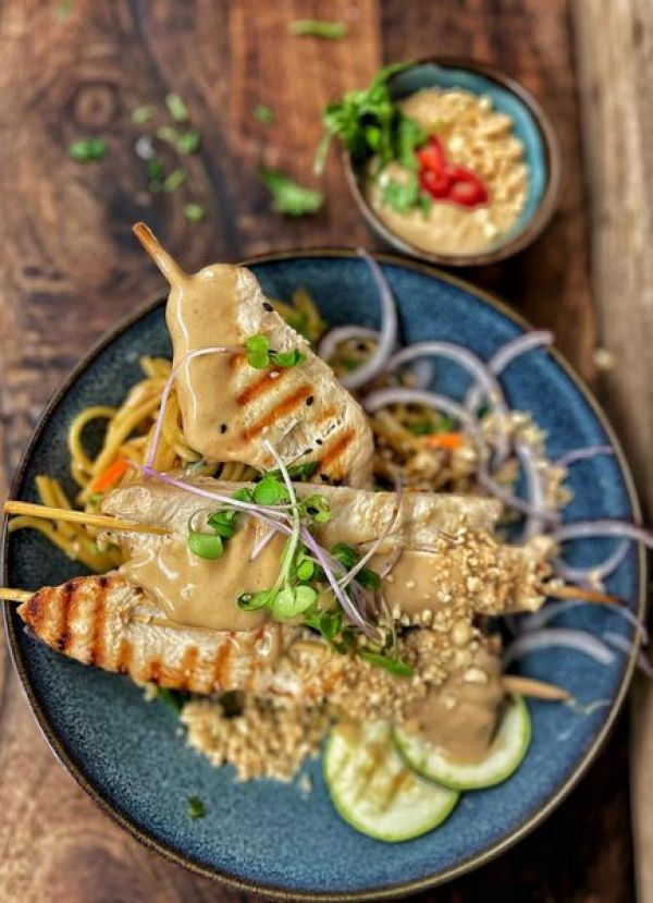 Kuřecí stehenní řízek v tempuře, bramborové pyré, asijský okurkový salát