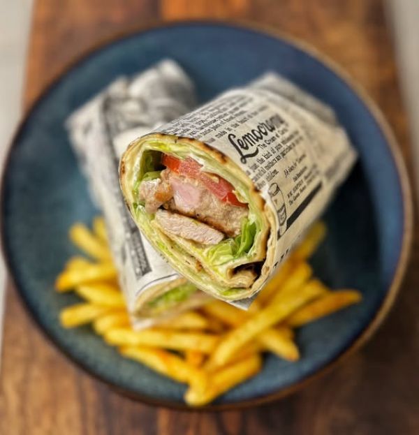 Kuřecí steak, kořenová zelenina, gril. brambor, chilli majo