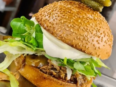 HOLANDSKÝ BURGER - HOLANDSKÝ ŘÍZEK, LISTOVÝ SALÁT, TATARKA, HOŘČICE V BRIOŠCE