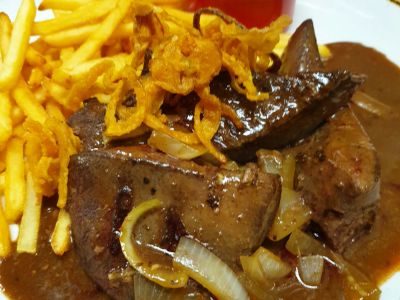 200g Hovězí steak ze špičky s volským okem, domácí hranolky