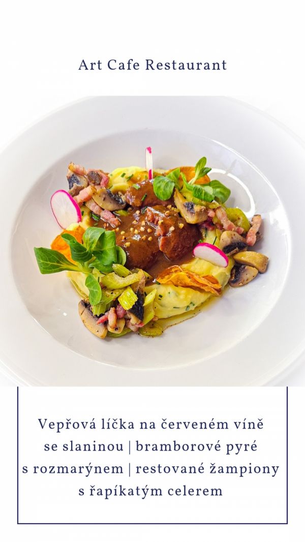 Grilovaná panenka se slaninovo-celerovou redukcí opékané brambory