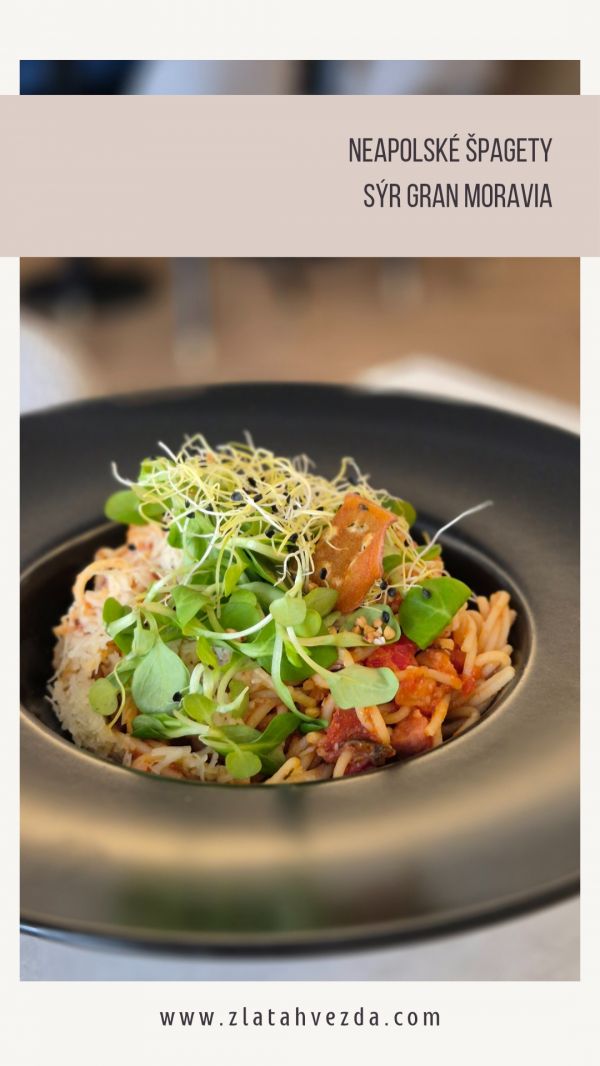 Špagety alá carbonara sypané sýrem Gran Moravia