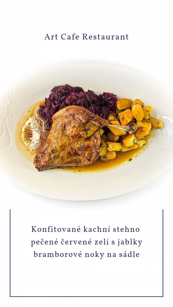 Pečené KACHNÍ stehno, houskový, karlovarský a bramborový knedlík, zelí