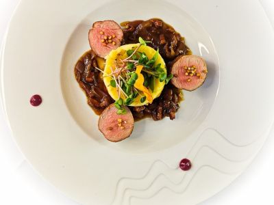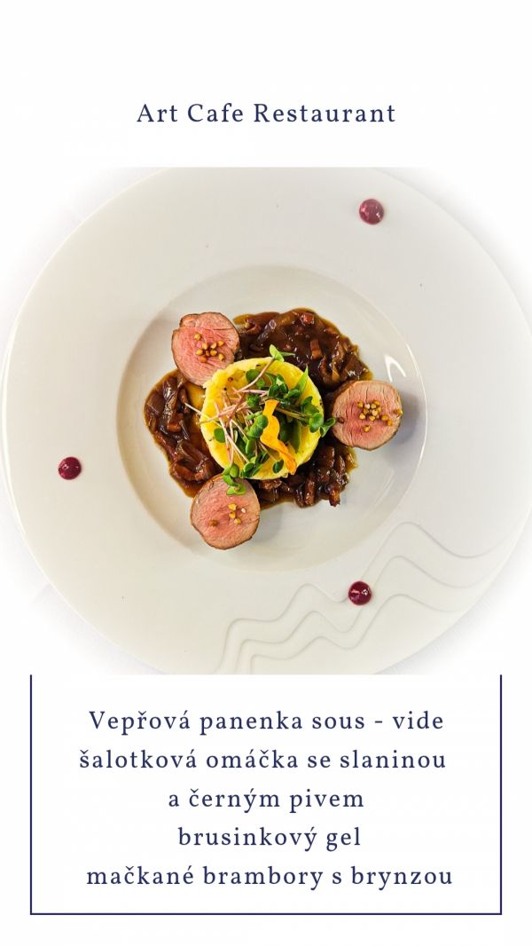 SVÍČKOVÁ na smetaně, houskový a karlovarský knedlík, brusinky, šlehačka, citrón