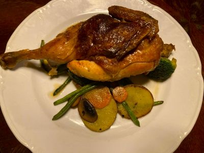 Pečené kuře s tradiční velikonoční nádivkou, červené zelí, náš špekový knedlík