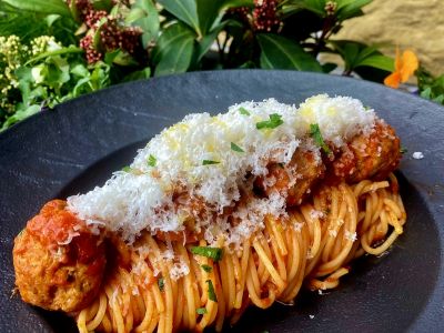 TIP TÝDNE: 350g Vepřová kotleta s kostí smažená na sádle, bramborové pyré, demi glace, okurkový salátek