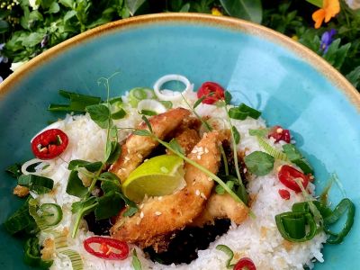 180g Kung-pao z kuřecích stehen, jasmínová rýže