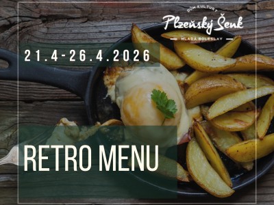 Menu: 0, 3l Slepičí vývar s masem, zeleninou a kapáním 150g Čevabčiči s vařenými bramborami, hořčicí a cibulkou