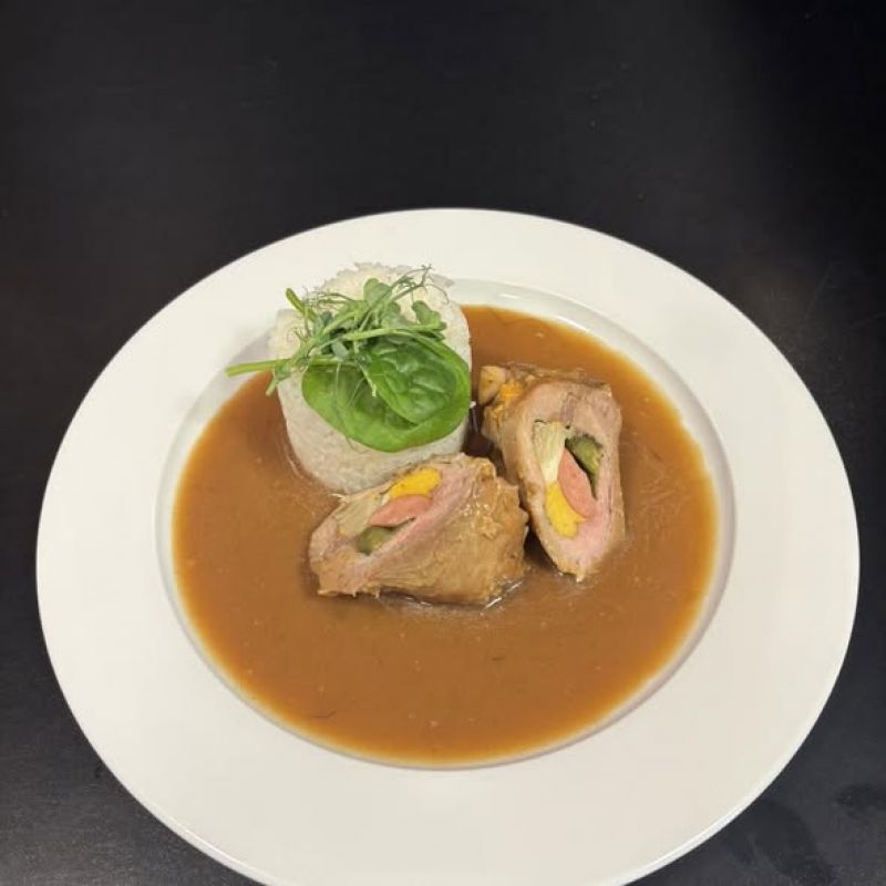 150g Špikovaná hovězí špička, rajská omáčka, houskový knedlík