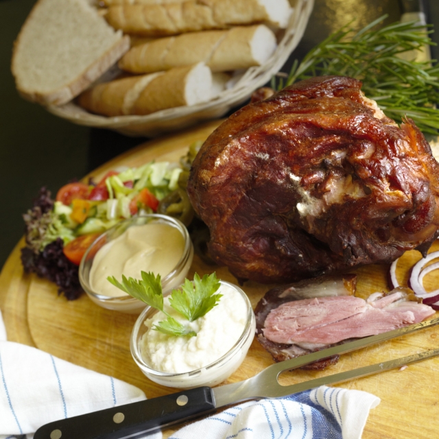 130g Selská vepřová pečínka, houskový knedlík, zelí