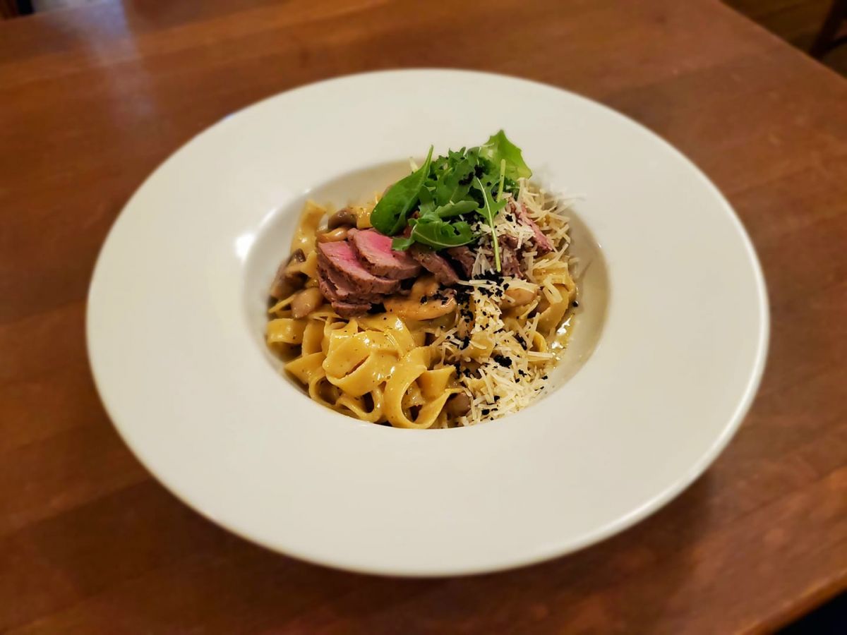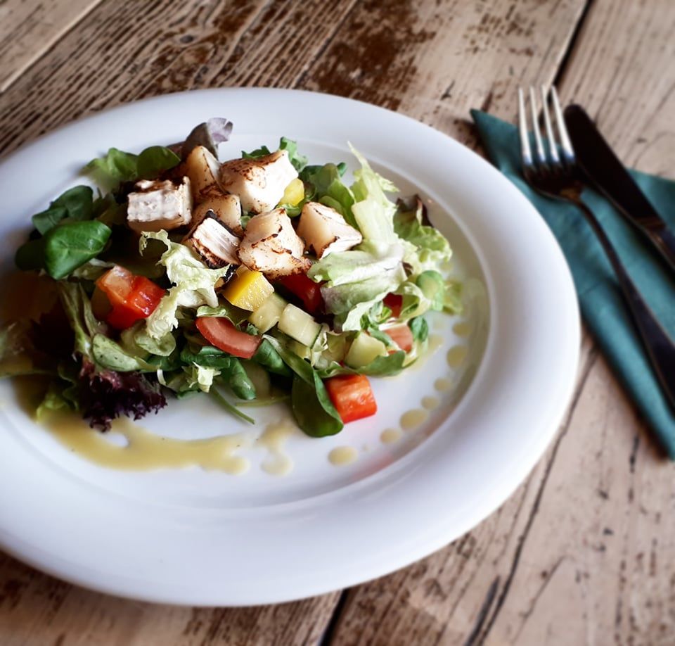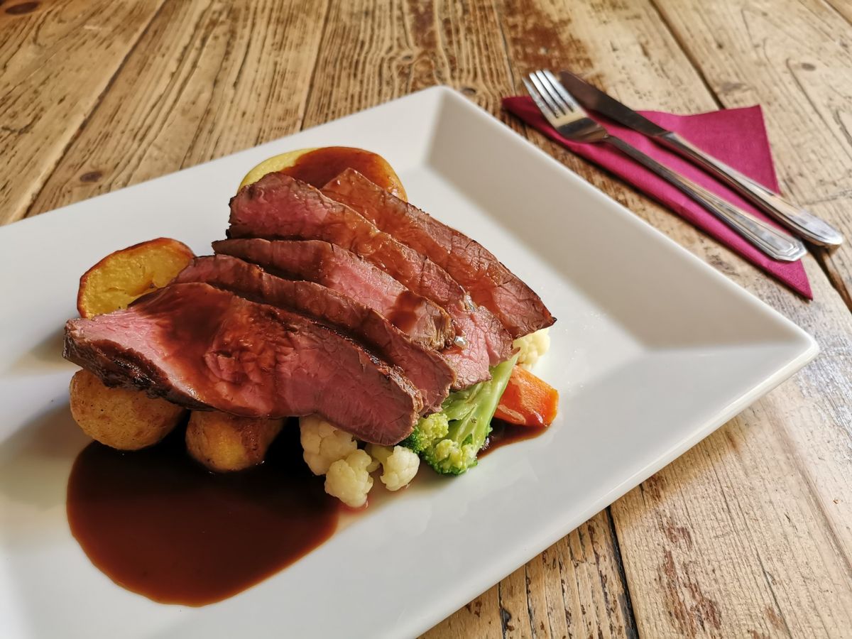 Hovězí burger se slaninou a sýrem čedar, domácí hranolky