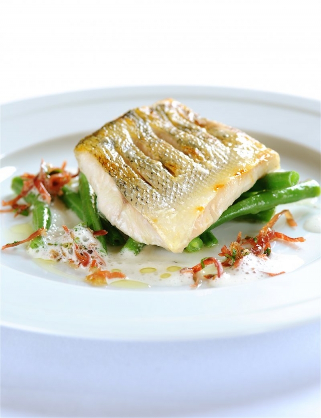 Filet z mořského vlka s ratatouille s citrónovým beurre blanc a bramborovým chipsem
