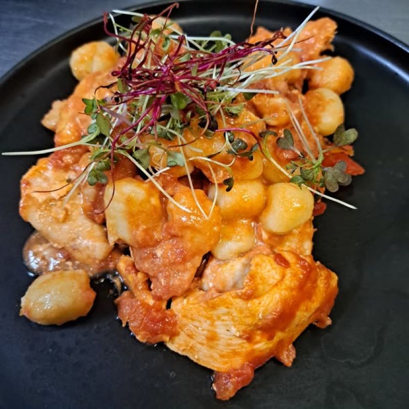 120g Vepřové žebírka, pepřová omáčka, šťouchané brambory s petrželkou