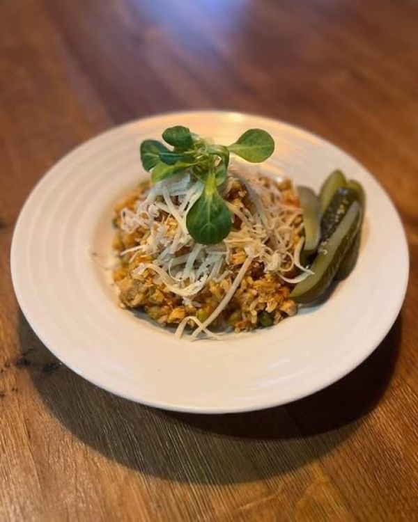 150g Kuřecí nudličky, sýrová omáčka, brambory grenaille 1a, 7, 9