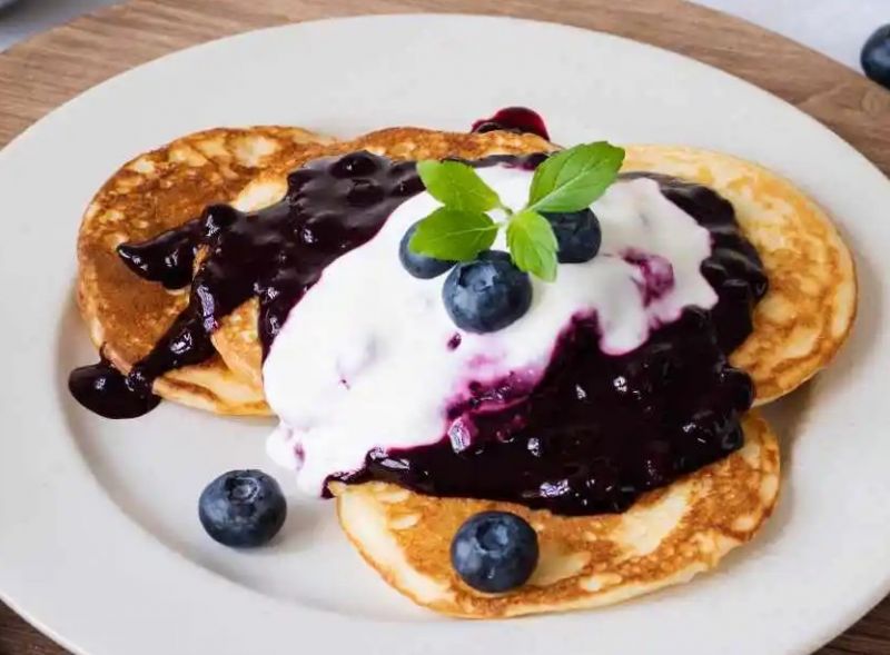 4ks Domácí lívance s borůvkovým přelivem šlehačkou zdobené čokoládou