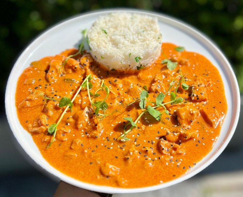 Burger s trhaným vepřovým masem, salátem coleslaw a zauzenou majonézou, steakové hranolky