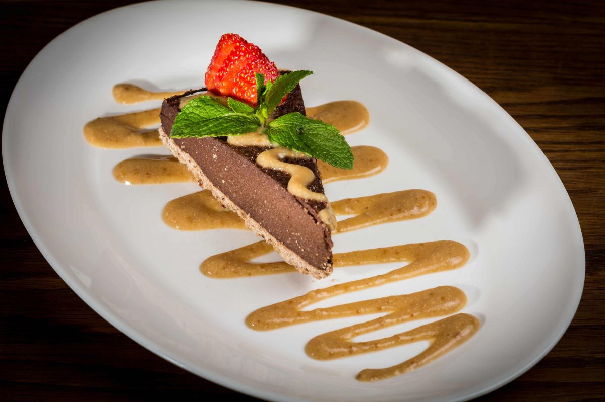 Čokoládovo-ořechový nugát s limetkovým korpusem, bílou čokoládou a marakujou –