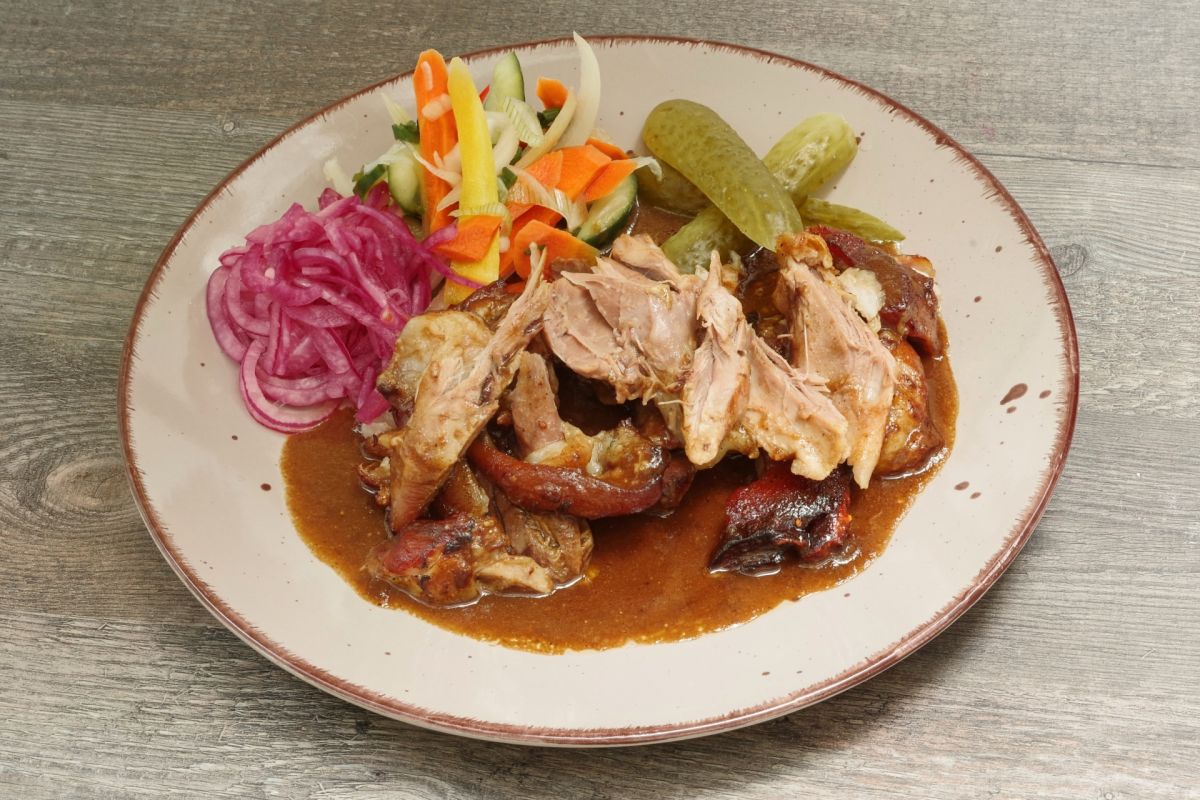 Krůtí soté se sušenými rajčaty, pečený brambor